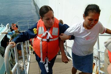 Keywords: US Navy 050330-N-6504N-002 Hospital Corpsman 3rd Class Lynette Shute, left, helps an East Timorese woman up a boat ramp.jpg en Dili East Timor Mar 30 2005 - Hospital Corpsman 3rd Class Lynette Shute left helps an East Timorese woman up a boat ramp leading into Military Sealift Command MSC hospital ship USNS Mercy T-AH 19 Several East Timorese were brought aboard Mercy for medical care Mercy is currently off the coast of Dili East Timor providing humanitarian assistance to the people of Dili While ashore Mercy's crew will focus on public health primary care dental treatment preventive medicine health education and pharmaceutical support Mercy's deployment is part of the U S commitment to Southeast Asia and the Pacific Island nations U S Navy photo by Journalist 3rd Class Isaac Needleman RELEASED 2005-03-30 050330-N-6504N-002 Navy http //www navy mil/view_image asp id 23182 U S Navy photo by Journalist 3rd Class Isaac Needleman PD-USGov-Military-Navy Aboard USNS Mercy T-AH-19 Healthcare in East Timor Hospital Corpsman United States Navy images from East Timor |