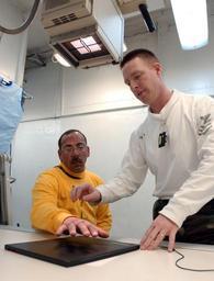 | Keywords: US Navy 050404-N-6410T-001 Hospital Corpsman 1st Class Troy Murphy, right, prepares a patient^rsquo,s hand for an X-ray.jpg en Atlantic Ocean Apr 4 2005 - Hospital Corpsman 1st Class Troy Murphy right prepares a patient s hand for an X-ray aboard the Nimitz-class aircraft carrier USS Theodore Roosevelt CVN 71 Roosevelt is currently underway for Tailored Ship Training Availability and Final Evaluation Problem TSTA/FEP in the Atlantic Ocean U S Navy photo by Photographer's Mate Airman Chris Thamann RELEASED 2005-04-04 050404-N-6410T-001 Navy http //www navy mil/view_image asp id 23347 U S Navy photo by Photographer's Mate Airman Chris Thamann PD-USGov-Military-Navy Hospital Corpsman Aboard USS Theodore Roosevelt CVN-71 |