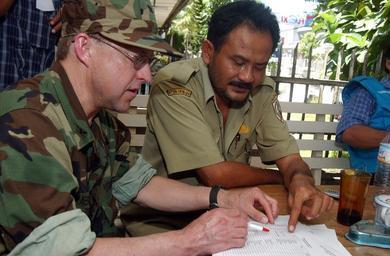 Keywords: US Navy 050412-N-7027P-115 U.S. Public Health Services Capt. Marc S. Traeger, left, reviews medical care charts with the head of Mars Hospital Nias, Doctor Yulianus Mendofa.jpg en Nias Indonesia Apr 12 2005 U S Public Health Services Capt Marc S Traeger left reviews medical care charts with the head of Mars Hospital Nias Doctor Yulianus Mendofa At the request of the government of Indonesia the Military Sealift Command MSC hospital ship USNS Mercy T-AH 19 and the MSC combat stores ship USNS Niagara Falls T-AFS 3 are on station off the coast of Nias providing assistance as determined appropriate and necessary with earthquake disaster relief efforts and provide medical assistance to those in need U S Navy photo by Photographer s Mate 2nd Class Sandra M Palumbo RELEASED 2005-04-12 050412-N-7027P-115 Navy http //www navy mil/view_image asp id 23549 U S Navy photo by Photographer s Mate 2nd Class Sandra M Palumbo PD-USGov-Military-Navy Images from US Navy location Nias Indonesia Aboard USNS Mercy T-AH-19 |