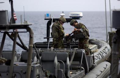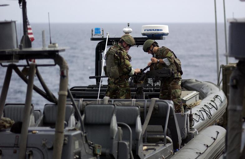 Keywords: US Navy 050421-N-4309A-067 Sailors assigned to Special Boat Team Twelve mount a .50 caliber machine gun aboard their Mark V Rigid Hull Inflatable Boat while underway with the amphibious transport dock USS Duluth (LPD 6).jpg en Gulf of Oman April 21 2005 Sailors assigned to Special Boat Team Twelve mount a 50 caliber machine gun aboard their Mark V Rigid Hull Inflatable Boat while underway with the amphibious transport dock USS Duluth LPD 6 Duluth is currently transiting through the Gulf of Oman conducting Maritime Security Operations as the ship heads home to her homeport of San Diego Calif Upon completion of the deployment Duluth is scheduled to be decommissioned in September 2005 ending a 39-year life cycle as a U S Navy ship U S Navy photo by Photographer's Mate 1st Class Aaron Ansarov RELEASED 2005-04-21 050421-N-4309A-067 Navy http //www navy mil/view_image asp id 23877 U S Navy photo by Photographer's Mate 1st Class Aaron Ansarov PD-USGov-Military-Navy Browning M2 of the US Navy USS Duluth LPD-6 Special Warfare Combatant-craft Crewmen |
