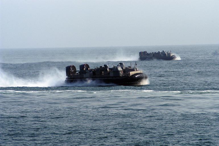 | Keywords: US Navy 050422-N-8154G-009 Two Landing Craft, Air Cushion (LCACs) approach the well deck of the amphibious assault ship USS Bataan (LHD 5) off the coast of Virginia.jpg en Atlantic Ocean April 22 2005 - Two Landing Craft Air Cushion LCACs approach the well deck of the amphibious assault ship USS Bataan LHD 5 off the coast of Virginia Both LCACs assigned to Assault Craft Unit Four ACU-4 are conducting operations with Bataan to demonstrate the Navy's amphibious capabilities both on land and sea while at Fleet Week in Fort Lauderdale Fla later this month U S Navy photo by Photographer s Mate Airman Jeremy L Grisham RELEASED 2005-04-22 050422-N-8154G-009 Navy http //www navy mil/view_image asp id 23885 U S Navy photo by Photographer s Mate Airman Jeremy L Grisham PD-USGov-Military-Navy Landing Craft Air Cushion LCAC-53 ship 1992 |