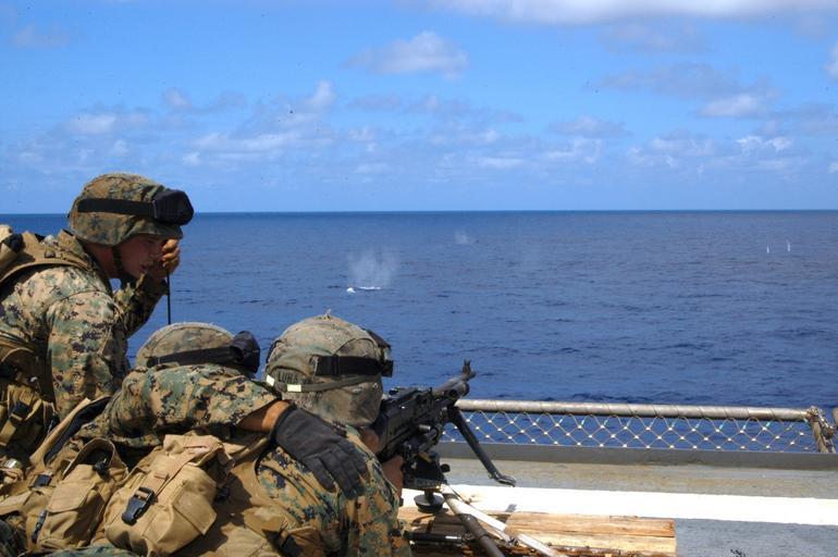 Keywords: US Navy 050521-N-2468S-010 Marines from 2nd Fleet Anti-terrorism Security Team (FAST) Co., 3rd Platoon, display teamwork while conducting live fire machine gun drills aboard USS Blue Ridge (LCC 19).jpg en Pacific Ocean May 21 2005 - Marines from 2nd Fleet Anti-terrorism Security Team FAST Co 3rd Platoon display teamwork while conducting live fire machine gun drills aboard USS Blue Ridge LCC 19 The FAST Marines based at Naval Weapons Station Yorktown Va are deployed aboard the Seventh Fleet flagship currently underway in the South Pacific U S Navy photo by Photographer's Mate 2nd Class Terry Spain RELEASED 2005-05-21 050521-N-2468S-010 Navy http //www navy mil/view_image asp id 24709 U S Navy photo by Photographer's Mate 2nd Class Terry Spain PD-USGov-Military-Navy Aboard USS Blue Ridge LCC-19 M-240 machine gun Fleet Antiterrorism Security Team |