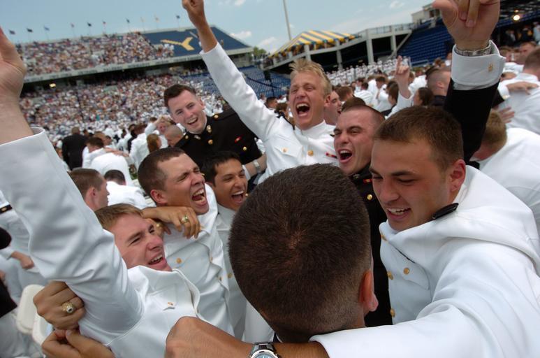 | Keywords: US Navy 050527-N-9693M-030 Newly commissioned officers celebrate their new positions with each other following the conclusion of the U.S. Naval Academy class of 2005 Graduation and Commissioning Ceremony.jpg en Annapolis Md May 27 2005 - Newly commissioned officers celebrate their new positions with each other following the conclusion of the U S Naval Academy class of 2005 Graduation and Commissioning Ceremony Nine hundred seventy-six Midshipmen graduated from the U S Naval Academy and became commissioned officers in the U S Military President George W Bush delivered the commencement address and personally greeted each graduate during the ceremony The men and women of the graduating class were sworn into the Navy as Ensigns or into the Marine Corps as Second Lieutenants U S Navy photo by Damon J Moritz RELEASED 2005-05-27 050527-N-9693M-030 Navy http //www navy mil/view_image asp id 24777 U S Navy photo by Damon J Moritz PD-USGov-Military-Navy Graduation and Commissioning Ceremony May 27 2005 |