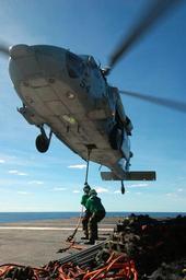 | Keywords: US Navy 050618-N-5781F-093 Supply Department personnel attach a cargo pendant to an MH-60S Seahawk helicopter, assigned to Helicopter Sea Combat Squadron Two Five (HCS-25), during a vertical replenishment.jpg en Coral Sea June 18 2005 - Supply Department personnel attach a cargo pendant to an MH-60S Seahawk helicopter assigned to Helicopter Sea Combat Squadron Two Five HCS-25 during a vertical replenishment aboard the conventionally powered aircraft carrier USS Kitty Hawk Kitty Hawk is currently operating in the Coral Sea off the coast of Australia's Queensland region as part of Exercise Talisman Sabre 2005 Talisman Sabre is an exercise jointly sponsored by the U S Pacific Command and Australian Defense Force Joint Operations Command and designed to train the U S Seventh Fleet commander's staff and Australian Joint Operations staff as a designated Combined Task Force CTF headquarters The exercise focuses on crisis action planning and execution of contingency response operations U S Pacific Command units and Australian forces will conduct land sea and air training throughout the training area More than 11 000 U S and 6 000 Australian personnel will participate U S Navy photo by Photographer's Mate 3rd Class Bo Flannigan RELEASED 2005-06-18 050618-N-5781F-093 Navy http //www navy mil/view_image asp id 25439 U S Navy photo by Photographer's Mate 3rd Class Bo Flannigan PD-USGov-Military-Navy MH-60S Seahawk MH-60S helihoisting cargo Images from US Navy ship USS Kitty Hawk Kitty Hawk is currently operating in the Coral Sea off the coast of Australia's Queensland region as part of Exercise Talisman Sabre 2005 Talisman Sabre is an exercise jointly sponsored by the U S Pacific Command and Australian Defense Force Joint Operations Command and designed to train the U S Seventh Fleet commander's staff and Australian Joint Operations staff as a designated Combined Task Force CTF Talisman Sabre 2005 |