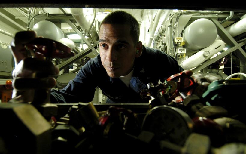 | Keywords: US Navy 050622-N-1397H-022 Machinist Mate 3rd Class Javier Rodriguez from San Juan, Puerto Rico, searches the A-division shelves for a globe valve to replace another in the ships chill water system.jpg en Pacific Ocean June 22 2005 - Machinist Mate 3rd Class Javier Rodriguez from San Juan Puerto Rico searches the A-division shelves for a globe valve to replace another in the ships chill water system aboard the amphibious assault ship USS Peleliu LHA 5 U S Navy photo by Photographer's Mate 2nd Class Prince A Hughes III RELEASED 2005-06-22 050622-N-1397H-022 Navy http //www navy mil/view_image asp id 25597 U S Navy photo by Photographer's Mate 2nd Class Prince A Hughes III PD-USGov-Military-Navy Aboard USS Peleliu LHA-5 |