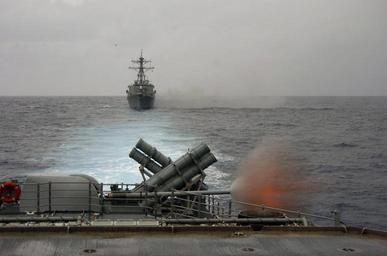 | Keywords: US Navy 050623-N-5781F-104 The guided missile cruiser USS Cowpens (CG 63) fires a round from one of her two MK-45 5-inch guns during a joint exercise with vessels assigned to the USS Kitty Hawk (CV 63) Carrier Strike Group.jpg en Coral Sea June 23 2005 The guided missile cruiser USS Cowpens CG 63 fires a round from one of her two MK-45 5-inch guns during a joint exercise with vessels assigned to the USS Kitty Hawk CV 63 Carrier Strike Group The MK-45 lightweight gun provides surface combatants accurate naval gunfire against fast highly maneuverable surface targets air threats and shore batteries during amphibious operations Cowpens is currently operating in the Coral Sea in support of the combined exercise Talisman Sabre 2005 Talisman Sabre is an exercise jointly sponsored by the U S Pacific Command and Australian Defence Force Joint Operations Command and designed to train the U S Seventh Fleet commander's staff and Australian Joint Operations staff as a designated Combined Task Force CTF headquarters The exercise focuses on crisis action planning and execution of contingency response operations U S Pacific Command units and Australian forces will conduct land sea and air training throughout the training area More than 11 000 U S and 6 000 Australian personnel will participate U S Navy photo by Photographer s Mate 3rd Class Bo J Flannigan RELEASED 2005-06-23 050623-N-5781F-104 Navy http //www navy mil/view_image asp id 25588 U S Navy photo by Photographer s Mate 3rd Class Bo J Flannigan PD-USGov-Military-Navy 5 /54 caliber Mark 45 gun firing USS Cowpens CG-63 Talisman Sabre 2005 |