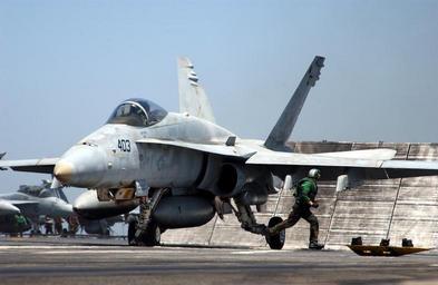 Keywords: US Navy 050625-N-7265L-012 A member of the waist catapult crew moves to a safe location after installing the holdback bar into the catapult shuttle in preparation for the launch of an F-A-18C Hornet.jpg en USS Carl Vinson June 25 2005 - A member of the waist catapult crew moves to a safe location after installing the holdback bar into the catapult shuttle in preparation for the launch of an F/A-18C Hornet assigned to the Argonauts of Strike Fighter Squadron One Four Seven VFA-147 on the flight deck aboard the Nimitz-class aircraft carrier USS Carl Vinson CVN 70 The Carl Vinson Carrier Strike Group is currently deployed to the Persian Gulf conducting operations in support of multi-national forces in Iraq Vinson will end its deployment with a homeport shift to Norfolk Va and commence a three-year refuel and complex overhaul U S Navy Photo by Photographer's Mate 2nd Class Inez Lawson RELEASED 2005-06-25 050625-N-7265L-012 Navy http //www navy mil/view_image asp id 25650 U S Navy Photo by Photographer's Mate 2nd Class Inez Lawson PD-USGov-Military-Navy Aboard USS Carl Vinson CVN-70 Strike Fighter Squadron 147 United States Navy |