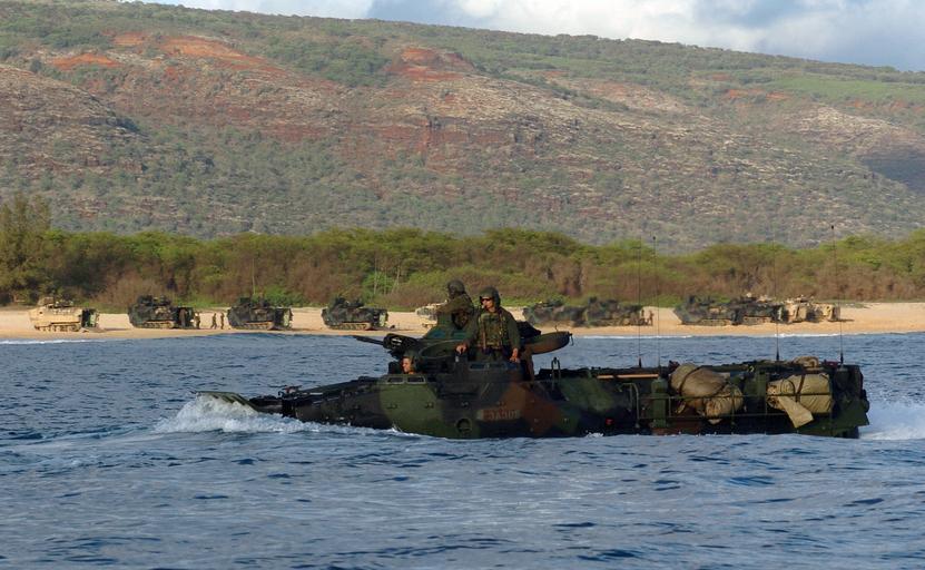 | Keywords: US Navy 050628-N-9866B-057 U.S. Marines assigned to the 3rd Amphibious Assault Battalion, navigate their Amphibious Assault Vehicle (AAV) through the Pacific Ocean.jpg en Pacific Ocean June 28 2005 - U S Marines assigned to the 3rd Amphibious Assault Battalion navigate their Amphibious Assault Vehicle AAV through the Pacific Ocean after departing the amphibious assault ship USS Peleliu LHA 5 off the shores of Hawaii Sailors and Marines assigned to the amphibious assault ship USS Peleliu LHA 5 are currently conducting amphibious training on the beaches of Pacific Missile Range Facility on the island of Kauai Hawaii U S Navy photo by Journalist 2nd Class Zack Baddorf RELEASED 2005-06-28 050628-N-9866B-057 Navy http //www navy mil/view_image asp id 25810 U S Navy photo by Journalist 2nd Class Zack Baddorf PD-USGov-Military-Navy Amphibious Assault Vehicle Aboard USS Peleliu LHA-5 3rd_Assault_Amphibian_Battalion |