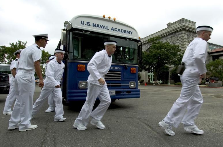 | Keywords: US Navy 050629-N-9693M-288 Prospective Midshipmen exit a bus under instruction from a 1st Class Midshipman prior to entering Bancroft Hall at the United States Naval Academy in Annapolis, Md.jpg en Annapolis Md June 29 2005 - Prospective Midshipmen exit a bus under instruction from a 1st Class Midshipman prior to entering Bancroft Hall at the United States Naval Academy in Annapolis Md Approximately 1200 prospective Midshipmen 4th Class Plebes reported to the Academy for Induction into the class of 2009 and the first day of Plebe summer The Plebes were cycled through a series of stations to establish medical and dental records receive uniforms complete paperwork and receive their military haircut U S Navy photo by Mr Damon J Moritz RELEASED 2005-06-29 050629-N-9693M-288 Navy http //www navy mil/view_image asp id 25763 U S Navy photo by Mr Damon J Moritz PD-USGov-Military-Navy United States Naval Academy Induction Day Sailor suits in art |