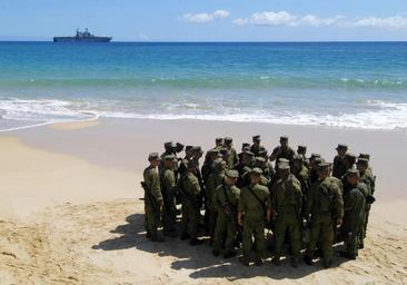| Keywords: US Navy 050629-N-1397H-079 U.S. Marines assigned to the 3rd Amphibious Assault Battalion based out of Camp Pendleton, Calif., gather around for a brief before launching Amphibious Assault Vehicles (AAVs) from the beach.jpg en Kauai Hawaii June 29 2005 U S Marines assigned to the 3rd Amphibious Assault Battalion based out of Camp Pendleton Calif gather around for a brief before launching Amphibious Assault Vehicles AAVs from the beach for their return to the amphibious assault ship USS Peleliu LHA 5 following an overnight training exercise at the Pacific Missile Range Facility U S Navy photo by Photographer s Mate 2nd Class Prince A Hughes III RELEASED 2005-06-29 050629-N-1397H-079 Navy http //www navy mil/view_image asp id 26017 U S Navy photo by Photographer s Mate 2nd Class Prince A Hughes III PD-USGov-Military-Navy Pacific Missile Range Facility Barking Sands 3rd_Assault_Amphibian_Battalion |