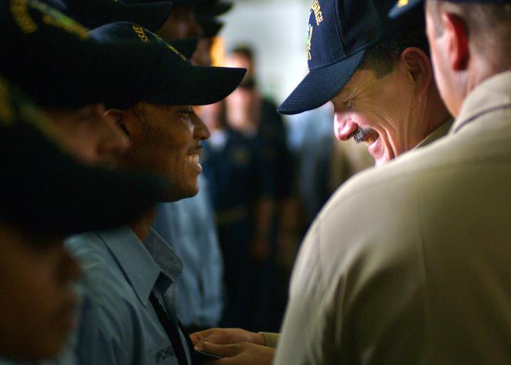 Keywords: US Navy 050712-N-0962S-074 Master Chief Petty Officer of the Navy (MCPON) Terry Scott pins an Enlisted Aviation Warfare Specialist (EAWS) pin on a Sailor.jpg en Persian Gulf July 12 2005 - Master Chief Petty Officer of the Navy MCPON Terry Scott pins an Enlisted Aviation Warfare Specialist EAWS pin on a Sailor aboard amphibious assault ship USS Kearsarge LHD 3 prior to an all hands call During the visit MCPON visited with Sailors about their changing and evolving missions in the Global War on Terrorism U S Navy photo by Journalist 1st Class Brandan W Schulze RELEASED 2005-07-12 050712-N-0962S-074 Navy http //www navy mil/view_image asp id 26362 U S Navy photo by Journalist 1st Class Brandan W Schulze PD-USGov-Military-Navy Aboard USS Kearsarge LHD-3 Terry D Scott |