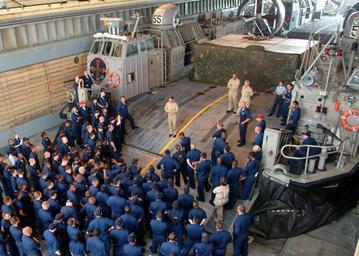 Keywords: US Navy 050713-N-0962S-043 Master Chief Petty Officer of the Navy (MCPON) Terry Scott speaks with Sailors aboard the amphibious dock landing ship USS Ashland (LSD 48) during an all hands call.jpg en Persian Gulf July 13 2005 - Master Chief Petty Officer of the Navy MCPON Terry Scott speaks with Sailors aboard the amphibious dock landing ship USS Ashland LSD 48 during an all hands call Scott spoke about the importance for individual Sailors to maintain physical financial mental and family readiness Ashland is currently deployed to the Persian Gulf in support of the Global War on Terrorism U S Navy photo by Journalist 1st Class Brandan W Schulze RELEASED 2005-07-13 050713-N-0962S-043 Navy http //www navy mil/view_image asp id 26216 U S Navy photo by Journalist 1st Class Brandan W Schulze PD-USGov-Military-Navy Aboard USS Ashland LSD-48 Terry D Scott |