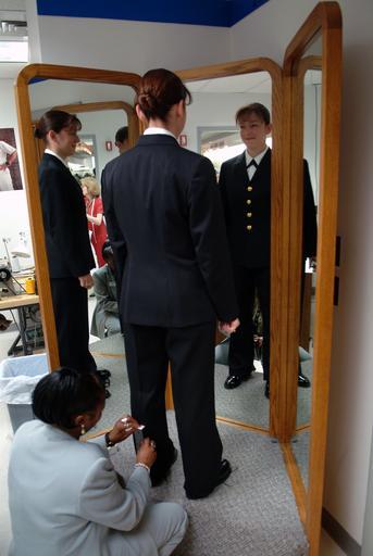Keywords: US Navy 050718-N-0962S-071 Chief of Naval Operations Shore Sailor of the Year, Hospital Corpsman 1st Class Shannon Dittlinger.jpg en Washington D C July 18 2005 - Chief of Naval Operations Shore Sailor of the Year Hospital Corpsman 1st Class Shannon Dittlinger is attended to while trying on her new Chief Petty Officer service dress blue uniform Before their promotion to Chief Petty Officer July 21st each of the four Sailors of the Year receives one of each uniform free of charge from the Navy Exchange U S Navy photo by Journalist 1st Class Brandan W Schulze RELEASED 2005-07-18 050718-N-0962S-071 Navy http //www navy mil/view_image asp id 26396 U S Navy photo by Journalist 1st Class Brandan W Schulze PD-USGov-Military-Navy People of the United States Navy Hospital Corpsman Navy Exchanges Mirrors in the United States People with mirrors |