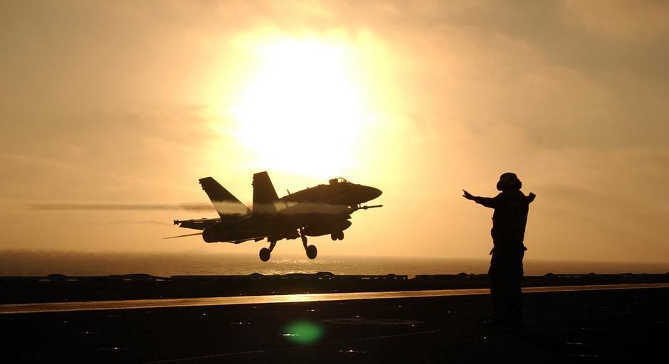 | Keywords: US Navy 050722-N-2959L-309 An Aviation Boatswain's Mate directs an aircraft onto a catapult as an F-A-18 Hornet launches off the flight deck aboard the Nimitz-class aircraft carrier USS Ronald Reagan (CVN 76).jpg en Pacific Ocean July 22 2005 - An Aviation Boatswain's Mate directs an aircraft onto a catapult as an F/A-18 Hornet launches off the flight deck aboard the Nimitz-class aircraft carrier USS Ronald Reagan CVN 76 Reagan and embarked Carrier Air Wing One Four CVW-14 are underway conducting Tailored Ships Training Availability TSTA U S Navy photo by Photographer's Mate 3rd Class Dominique M Lasco RELEASED 2005-07-22 050722-N-2959L-309 Navy http //www navy mil/view_image asp id 26515 U S Navy photo by Photographer's Mate 3rd Class Dominique M Lasco PD-USGov-Military-Navy Aviation Boatswain's Mates F/A-18 Hornet launches from USS Ronald Reagan CVN-76 |