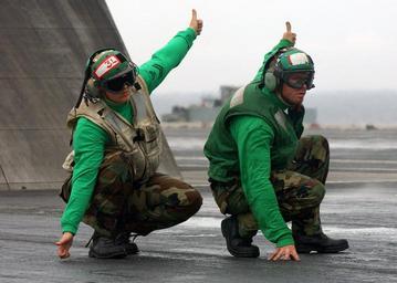 | Keywords: US Navy 050729-N-5345W-197 Final checkers give the clear to launch signal prior to launching an F-A-18F Super Hornet from the flight deck aboard the Nimitz-class aircraft carrier USS Harry S. Truman (CVN 75).jpg en Atlantic Ocean July 29 2005 - Final checkers assigned to the Jolly Rogers of Strike Fighter Squadron One Zero Three VFA-103 give the clear to launch signal prior to launching an F/A-18F Super Hornet from the flight deck aboard the Nimitz-class aircraft carrier USS Harry S Truman CVN 75 Truman is currently conducting carrier qualifications and sustainment operations off of the East Coast U S Navy photo by Photographer's Mate 3rd Class Kristopher Wilson RELEASED 2005-07-29 050729-N-5345W-197 Navy http //www navy mil/view_image asp id 26713 U S Navy photo by Photographer's Mate 3rd Class Kristopher Wilson PD-USGov-Military-Navy Aboard USS Harry S Truman CVN-75 Strike Fighter Squadron 103 United States Navy |