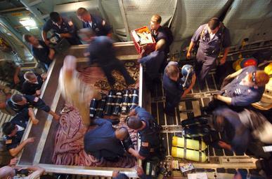 | Keywords: US Navy 050805-N-8629M-086 Preparations to deploy ROV Super Scorpio.jpg en Naval Air Station North Island San Diego Calif Aug 5 2005 Sailors assigned to the U S Navy's Deep Submergence Unit Naval Base Coronado make preparations to load Super Scorpio a robotic rescue vehicle aboard an Air Force C-5 Galaxy aircraft The Navy is transporting two of the remotely operated vehicles in an effort to assist the rescue of seven Russian Sailors trapped on the ocean floor in a mini-submarine off the Kamchatka Peninsula The Super Scorpios and a team of U S Navy technicians are to be flown from San Diego to Petropavolvsk and then transported by truck to be embarked on a Russian ship before making a descent to the stranded submarine U S Navy photo by Photographer's Mate 3rd Class Rebecca J Moat RELEASED 2005-08-05 050805-N-8629M-086 Navy http //www navy mil/view_image asp id 26912 U S Navy photo by Photographer's Mate 3rd Class Rebecca J Moat PD-USGov-Military-Navy Scorpio ROV at Naval Air Station North Island Transport of vehicles by C-5 Galaxy |