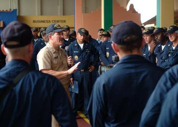 Keywords: US Navy 050806-N-0962S-211 Master Chief Petty Officer of the Navy (MCPON) Terry Scott speaks to U.S. Navy Sailors and U.S. Coast Guardsmen during an all hands call in Colon, Panama.jpg en Colon Panama Aug 6 2005 - Master Chief Petty Officer of the Navy MCPON Terry Scott speaks to U S Navy Sailors and U S Coast Guardsmen during an all hands call in Colon Panama MCPON visited a variety of platforms operating in and around Panama to speak with Sailors about PANAMAX 2005 and the importance of joint interoperability with foreign navies PANAMAX is a training exercise in defense of the Panama Canal involving 15 countries U S Navy photo by Journalist 1st Class Brandan W Schulze RELEASED 2005-08-06 050806-N-0962S-211 Navy http //www navy mil/view_image asp id 27231 U S Navy photo by Journalist 1st Class Brandan W Schulze PD-USGov-Military-Navy United States Navy in Colon Panama PANAMAX 2005 Terry D Scott |