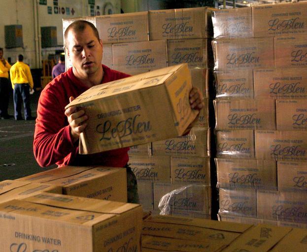 Keywords: US Navy 050905-N-2389S-013 Aviation Ordnanceman 1st Class Jason Faciszewski organizes boxes of drinking water in the hangar bay of USS Harry S. Truman (CVN 75).jpg en Gulf of Mexico Sept 5 2005 - Aviation Ordnanceman 1st Class Jason Faciszewski organizes boxes of drinking water in the hangar bay of USS Harry S Truman CVN 75 prior to them being transferred by helicopter to the Gulf Coast shore for hurricane relief The Navy's involvement in the Hurricane Katrina humanitarian assistance operations is led by the Federal Emergency Management Agency FEMA in conjunction with the Department of Defense U S Navy photo by Journalist 3rd Class Kat Smith RELEASED 2005-09-05 050905-N-2389S-013 Navy http //www navy mil/view_image asp id 27783 U S Navy photo by Journalist 3rd Class Kat Smith PD-USGov-Military-Navy Aviation Ordnanceman Aboard USS Harry S Truman CVN-75 |