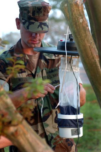 | Keywords: US Navy 050909-N-2653P-003 Forward Deployable Preventive Medicine Unit (FDPMU) East, removes a Light Trap provided by the Centers for Disease Control (CDC) from a tent city area on board NAS JRB New Orleans.jpg en Naval Air Station NAS Joint Reserve Base JRB New Orleans La Sept 9 2005 - Preventative Medicine Technician PMT Hospital Corpsman 1st Class Jonathan Wells assigned to Forward Deployable Preventive Medicine Unit FDPMU East removes a Light Trap provided by the Centers for Disease Control CDC from a tent city area on board NAS JRB New Orleans The FDPMU is assisting the CDC and the Louisiana Department of Public Health to eliminate vector-borne disease and other insect-related problems associated with Louisiana s mosquito population Diseases like West Nile Virus can be transmitted by mosquitoes which thrive in wet ecological terrain like that inherent to Louisiana U S Navy photo by Journalist 1st Class James Pinsky RLEASED 050909-N-2653P-003 Navy http //www navy mil/view_image asp id 28304 U S Navy photo PD-USGov-Military-Navy Mosquito control Naval Air Station Joint Reserve Base New Orleans Traps for flying insects |