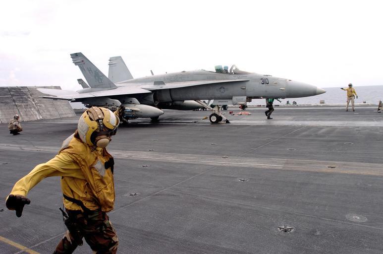 Keywords: US Navy 050926-N-0413R-013 Aviation Boatswain Mate Airman Danielle Maniscalo from San Antonio, Texas, directs an F-A-18C Hornet assigned to the Red Devils of Marine Fighter Attack Squadron Two Three Two (VMFA-232).jpg en Indian Ocean Sept 26 2005 Aviation Boatswain Mate Airman Danielle Maniscalo from San Antonio Texas directs an F/A-18C Hornet assigned to the Red Devils of Marine Fighter Attack Squadron Two Three Two VMFA-232 into launch position on the flight deck aboard the nuclear-powered aircraft carrier USS Nimitz CVN 68 The Nimitz Strike Group is currently on a regularly scheduled deployment in support of the Global War on Terrorism U S Navy photo by Photographer s Mate 3rd Class Shannon E Renfroe RELEASED 2005-09-26 050926-N-0413R-013 Navy http //www navy mil/view_image asp id 28635 U S Navy photo by Photographer s Mate 3rd Class Shannon E Renfroe PD-USGov-Military-Navy Marine Fighter Attack Squadron 232 F/A-18C Hornet United States Marine Corps USS Nimitz CVN-68 flight deck |