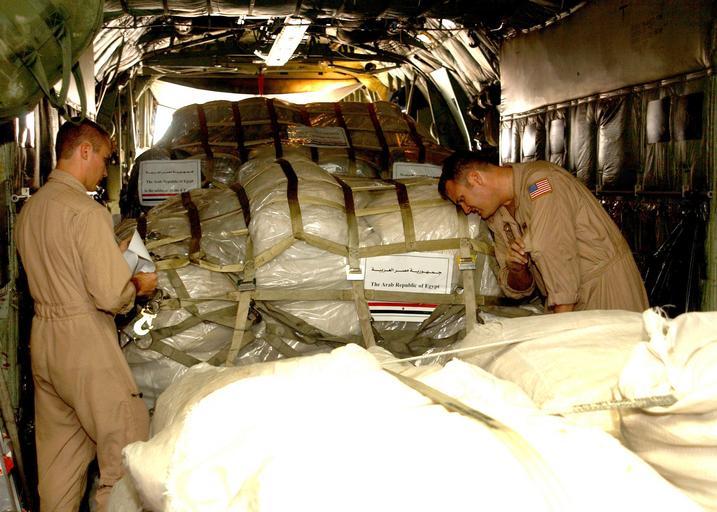| Keywords: US Navy 051021-N-5863B-086 Sailors assigned to Fleet Logistics Support Squadron Six Four (VR-64), secure pallets of food, and re-building supplies donated by the government of The Arab Republic of Egypt.jpg en Cairo Egypt Oct 21 2005 Sailors assigned to Fleet Logistics Support Squadron Six Four VR-64 secure pallets of food and re-building supplies donated by the government of The Arab Republic of Egypt aboard one of VR-64 s U S Navy C-130T Hercules cargo aircraft The supplies will be flown to facilities in Manama Bahrain where they will be loaded aboard the U S Navy amphibious transport dock ship USS Cleveland LPD 7 bound for Pakistan The United States is participating in a multinational assistance and support effort led by the Pakistani Government to bring aid to the victims of the devastating earthquake that struck Pakistan on October 8 2005 U S Navy photo by Photographer s Mate 2nd Class Carolla Bennett RELEASED 2005-10-21 051021-N-5863B-086 Navy http //www navy mil/view_image asp id 29202 U S Navy photo by Photographer s Mate 2nd Class Carolla Bennett PD-USGov-Military-Navy Images from US Navy location Cairo Egypt C-130 Hercules interiors C-130 Hercules United States Navy Aboard USS Cleveland LPD-7 Army of Egypt |