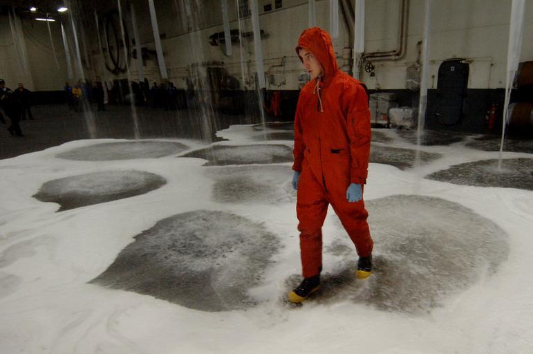 Keywords: US Navy 051213-N-6213R-002 Fireman Hunter Young, inspects the Aqueous Film Forming Foam (AFFF) Sprinkler System during a hangar bay counter measure wash down aboard the Nimitz-class aircraft carrier USS John C. Stennis (CVN 74).jpg en Pacific Ocean Dec 13 2005 - Fireman Hunter Young inspects the Aqueous Film Forming Foam AFFF Sprinkler System during a hangar bay counter measure wash down aboard the Nimitz-class aircraft carrier USS John C Stennis CVN 74 Stennis is undergoing sea trials after an 11-month overhaul at the Puget Sound Naval Shipyard U S Navy photo by Photographer's Mate 2nd Class Mark J Rebilas RELEASED 2005-12-13 051213-N-6213R-002 Navy http //www navy mil/view_image asp id 30719 U S Navy photo by Photographer's Mate 2nd Class Mark J Rebilas PD-USGov-Military-Navy Hangar bays of USS John C Stennis CVN-74 Aqueous Film Forming Foam Fire sprinklers Photographs by Mark J Rebilas |