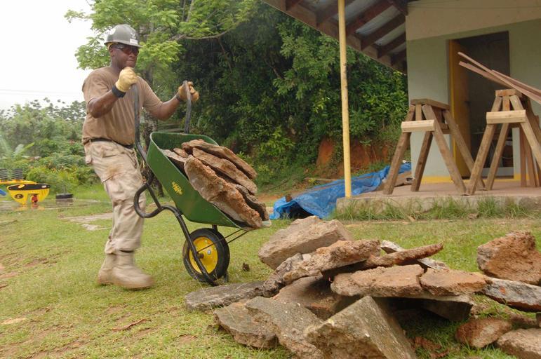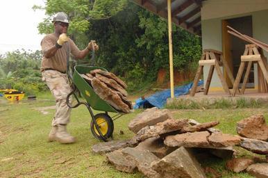 Keywords: US Navy 051228-N-4374S-009 Utilitiesman 1st Class Arthur Smiley, a U.S. Navy Seabee assigned to Naval Mobile Construction Battalion Three (NMCB-3), dumps a wheel barrel full of demolished concrete during patio restoration at th.jpg en Victoria Seychelles Dec 28 2005 - Utilitiesman 1st Class Arthur Smiley a U S Navy Seabee assigned to Naval Mobile Construction Battalion Three NMCB-3 dumps a wheel barrel full of demolished concrete during patio restoration at the Nazareth Boys Orphanage NMCB-3 is deployed to the island of Mahe Seychelles to provide general engineering construction and renovation of orphanages U S Navy photo by Photographer's Mate 2nd Class Michael Sandberg RELEASED 2005-12-28 051228-N-4374S-009 Navy http //www navy mil/view_image asp id 30926 U S Navy photo by Photographer's Mate 2nd Class Michael Sandberg PD-USGov-Military-Navy Victoria Seychelles Utilitiesman Naval Mobile Construction Battalion 3 Wheelbarrows |