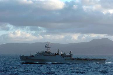 | Keywords: US Navy 060115-N-9866B-011 The amphibious transport dock ship USS Ogden (LPD 5) underway off the coast of Southern California.jpg en Pacific Ocean Jan 15 2006 - The amphibious transport dock ship USS Ogden LPD 5 underway off the coast of Southern California conducting training with other Expeditionary Strike Group Three ESG-3 ships ESG-3 is currently conducting their Joint Task Force Exercise JTFEX in preparation for an upcoming scheduled deployment U S Navy photo by Journalist 2nd Class Zack Baddorf RELEASED 2006-01-15 060115-N-9866B-011 Navy http //www navy mil/view_image asp id 31358 U S Navy photo by Journalist 2nd Class Zack Baddorf PD-USGov-Military-Navy USS Ogden LPD-5 |