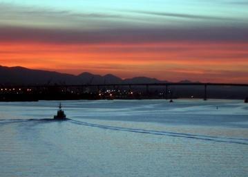 | Keywords: US Navy 060126-N-3314H-010 The amphibious assault ship USS Peleliu (LHA 5) enters San Diego Harbor at sunrise, accompanied by harbor police.jpg en San Diego Jan 26 2006 - The amphibious assault ship USS Peleliu LHA 5 enters San Diego Harbor at sunrise accompanied by harbor police Peleliu and Expeditionary Strike Group Three ESG-3 were underway off the coast of Southern California conducting their Joint Task Force Exercise JTFEX U S Navy photo by Draftsman 1st Class Carmen O Hubbs RELEASED 2006-01-26 060126-N-3314H-010 Navy http //www navy mil/view_image asp id 31606 U S Navy photo by Draftsman 1st Class Carmen O Hubbs PD-USGov-Military-Navy Naval ship arrivals to Naval Base San Diego Aboard USS Peleliu LHA-5 |