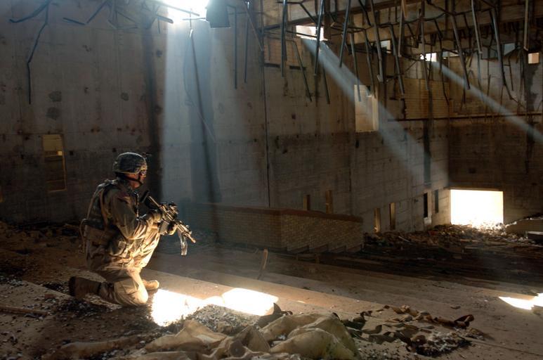 | Keywords: US Navy 060206-N-8252B-048 U.S. Army 2nd Lt. Amos Fox secures a building in a weapons compound in Hateen, Iraq, while providing security for the Ashurah pilgrims that will be passing through to Karbala.jpg en Hateen Iraq Feb 6 2006 - U S Army 2nd Lt Amos Fox secures a building in a weapons compound in Hateen Iraq while providing security for the Ashurah pilgrims that will be passing through to Karbala Fox is a fire support officer for Bravo Company 2nd Battalion 8th Infantry Regiment 2nd Brigade Combat Team 4th Infantry Division U S Navy photo by Photographer's Mate 2nd Class Katrina Beeler RELEASED fa عراق، استان کربلا ۶ فوریه ۲۰۰۶ ۷ محرم ۱۴۲۷ ، ستوان دوم آموس فاکس، افسر ارتش ایالات متحده آمریکا به شکلی کاملا مسلح در حال حفاظت و تامین امنیت برای زائران کربلا، اسلحه ای را نشانه گرفته است ستوان فاکس به عنوان افسر پشتیبان آتش در گروهان براوو، گردان دوم، هنگ هشتم پیاده نظام و تیپ دوم پیکار در ارتش آمریکا مشغول به کار است 2006-02-06 060206-N-8252B-048 Navy http //www navy mil/view_image asp id 32021 U S Navy photo by Photographer's Mate 2nd Class Katrina Beeler PD-USGov-Military-Navy Images from US Navy location Hateen Iraq |