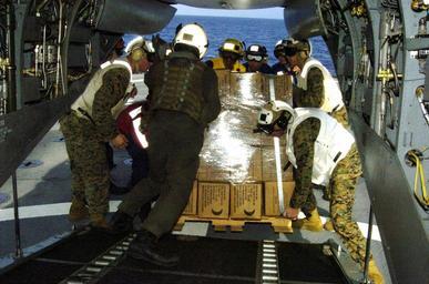 | Keywords: US Navy 060219-N-5067K-013 Humanitarian supplies are loaded aboard a CH-46E Sea Knight.jpg en Off the coast of Southern Leyte Republic of the Philippines Feb 19 2006 Aboard the dock landing ship USS Harpers Ferry LSD 49 U S Marine Cpl Andrew C Alexander assigned to the Flying Tigers of Marine Medium Helicopter Squadron 262 HMM-262 directs the loading of food blankets water and other vital supplies aboard a CH-46E Sea Knight helicopter Harpers Ferry along with the amphibious assault ship USS Essex LHD 2 is on station off the Philippine coast rendering relief and assistance to the victims of the Feb 17 landslide Both are part of the Forward Deployed Amphibious Ready Group the Navy s only forward deployed amphibious force homeported in Sasebo Japan U S Navy Photo by Photographer's Mate 1st Class Michael D Kennedy RELEASED 2006-02-19 060219-N-5067K-013 Navy http //www navy mil/view_image asp id 32079 U S Navy Photo by Photographer's Mate 1st Class Michael D Kennedy PD-USGov-Military-Navy Images from US Navy location Off the coast of Southern Leyte Republic of the Philippines CH-46 Sea Knight interiors Humanitarian aid in the Philippines |