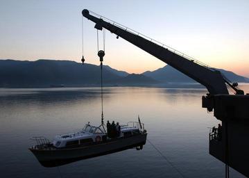 Keywords: US Navy 060221-N-0685C-001 Sailors aboard Nimitz-class aircraft carrier USS Theodore Roosevelt (CVN 71) use a Boat and Aircraft (B^A) crane to lift the Captain's Gig.jpg en Mediterranean Sea Feb 21 2006 - Sailors aboard Nimitz-class aircraft carrier USS Theodore Roosevelt CVN 71 use a Boat and Aircraft B A crane to lift the Captain's Gig from Turkish waters after a port visit in Marmaris Turkey Roosevelt and Carrier Air Wing Eight CVW-8 are currently underway on a regularly scheduled deployment supporting maritime security operations U S Navy photo by Photographer's Mate Airman Javier Capella RELEASED 2006-02-21 060221-N-0685C-001 Navy http //www navy mil/view_image asp id 32269 U S Navy photo by Photographer's Mate Airman Javier Capella PD-USGov-Military-Navy Aboard USS Theodore Roosevelt CVN-71 Ship-lifting cranes |