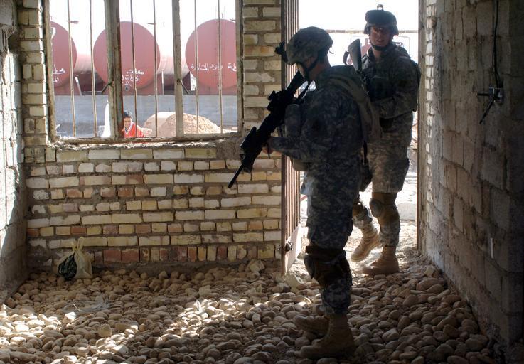 | Keywords: US Navy 060313-N-6901L-012 Two U.S. Army soldiers assigned to the 66th Armor Regiment, Alpha Company, search an abandoned building to make sure it is safe before conducting business with nearby locals.jpg en Taji Iraq March 13 2006 - Two U S Army soldiers assigned to the 66th Armor Regiment Alpha Company search an abandoned building to make sure it is safe before conducting business with nearby locals during a routine patrol near Forward Operating Base Camp Taji U S Navy photo by Photographer's Mate 1st Class Michael Larson RELEASED 2006-03-13 060313-N-6901L-012 Navy http //www navy mil/view_image asp id 32771 U S Navy photo by Photographer's Mate 1st Class Michael Larson PD-USGov-Military-Navy Taji Iraq |