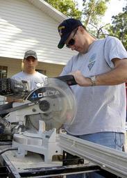Keywords: US Navy 060410-N-7781S-046 Commanding Officer of the Navy Operational Support Center (NOSC) Cmdr. Jeffery P. Eaton saws a baseboard while Aviation Structural Mechanic 2nd Class Aaron Sieg watches.jpg en Jacksonville Fla April 10 2006 - Commanding Officer of the Navy Operational Support Center NOSC Cmdr Jeffery P Eaton saws a baseboard while Aviation Structural Mechanic 2nd Class Aaron Sieg watches during a Habitat for Humanity volunteer effort to help build houses for low-income families Twenty-seven NOSC Jacksonville Sailors volunteered for the worthy cause U S Navy photo by Photographer's Mate 2nd Class Andrea Simmons RELEASED 2006-04-10 060410-N-7781S-046 Navy http //www navy mil/view_image asp id 33514 U S Navy photo by Photographer's Mate 2nd Class Andrea Simmons PD-USGov-Military-Navy 2006 at Naval Air Station Jacksonville |