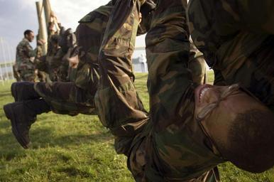 Keywords: US Navy 060516-N-6967M-757 Struggling to hold onto a rope for 30 seconds, U.S. Naval Academy Class of 2009 participate in this year's Sea Trials.jpg en Annapolis Md May 16 2006 - Struggling to hold onto a rope for 30 seconds U S Naval Academy Class of 2009 participate in this year's Sea Trials Modeled after the Marine Corps' 54-hour Crucible and Navy's Battle Stations freshmen split into different groups to persevere in the grueling five phases of the 11 5 hour event Evolutions included challenges in an aquatic environment combat conditioning teamwork and unit cohesion land/water obstacles endurance challenges and obstacle course U S Navy photo by Photographer's Mate 1st Class Shane T McCoy RELEASED 2006-05-16 060516-N-6967M-757 Navy http //www navy mil/view_image asp id 34623 U S Navy photo by Photographer's Mate 1st Class Shane T McCoy PD-USGov-Military-Navy Sea Trials Obstacle courses Photographs by Shane T McCoy