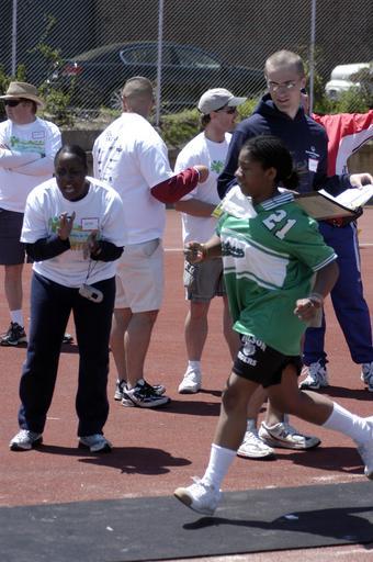 Keywords: US Navy 060523-N-5608F-002 Personnel Specialist 2nd Class Chanetta Williamson, left, assigned to Personnel Support Detachment Anacostia and Seaman Cameron Kisselbaugh, right, assigned to the Anacostia Navy Ceremonial Guard Uni.jpg en Washington D C May 23 2006 - Personnel Specialist 2nd Class Chanetta Williamson left assigned to Personnel Support Detachment Anacostia and Seaman Cameron Kisselbaugh right assigned to the Anacostia Navy Ceremonial Guard Unit encourage a Special Olympics athlete as she competes in the running long jump The 2006 Washington D C chapter Summer Special Olympics kicked of on May 23rd at Howard University Special Olympics are an international nonprofit organization dedicated to empowering individuals with intellectual disabilities to become physically fit productive and respected members of society through sports training and competition U S Navy photo by Journalist 1st Class Kristin Fitzsimmons RELEASED 2006-05-23 060523-N-5608F-002 Navy http //www navy mil/view_image asp id 34833 U S Navy photo by Journalist 1st Class Kristin Fitzsimmons PD-USGov-Military-Navy Athletics in Washington D C Special Olympics Personnel Specialist United States Navy |