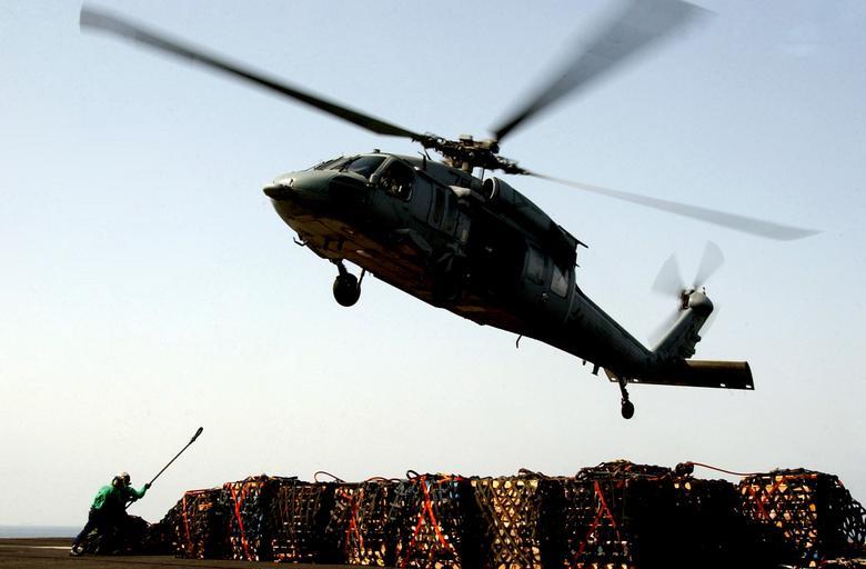 MAKE A MEME View Large Image Navy 060525-N-5549O-290 Sailors assigned to the Nimitz-class aircraft carrier USS Ronald Reagan (CVN 76) prepare to attach cargo to an MH-60S Knighthawk.jpg en Persian Gulf May 25 2006 - Sailors assigned to the Nimitz-class aircraft carrier ...
