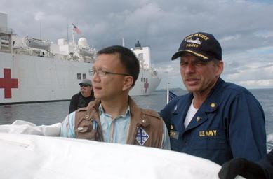 | Keywords: US Navy 060617-N-9076B-190 Medical Treatment Facility Commanding Officer aboard the U.S. Military Sealift Command (MSC) Hospital Ship USNS Mercy (T-AH 19), Capt. Joseph Moore, enjoys a ride in.jpg en Tawi Tawi Philippines June 17 2006 - Medical Treatment Facility Commanding Officer aboard the U S Military Sealift Command MSC Hospital Ship USNS Mercy T-AH 19 Capt Joseph Moore enjoys a ride in Band Aide One with Philippine doctor Tony Gonzales Mercy is on a five-month deployment to South Asia Southeast Asia and the Pacific Islands The medical crew aboard Mercy will provide general and ophthalmology surgery basic medical evaluation and treatment preventive medicine treatment dental screenings and treatment optometry screenings eyewear distribution public health training and veterinary services as requested by the host nations Mercy is uniquely capable of supporting medical and humanitarian assistance needs and is configured with special medical equipment and a robust multi-specialized medical team that can provide a range of services ashore as well as aboard the ship The medical staff is augmented with an assistance crew many of whom are part of nongovernmental organizations that have significant medical capabilities U S Navy photo by Chief Photographer's Mate Don Bray RELEASED 2006-06-17 060617-N-9076B-190 Navy http //www navy mil/view_image asp id 35926 U S Navy photo by Chief Photographer's Mate Don Bray PD-USGov-Military-Navy Images from US Navy location Tawi-Tawi Philippines Aboard USNS Mercy T-AH-19 |