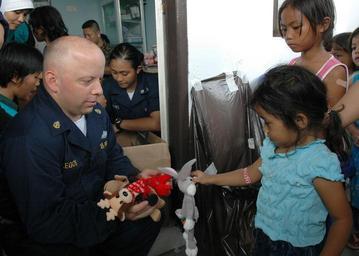 | Keywords: US Navy 060816-N-3714J-094 Navy Chief Hospital Corpsman Chris Gallegos of San Diego, a member the Medical Treatment Facility aboard the U.S. Naval hospital ship USNS Mercy (T-AH 19), distributes stuffed animals to children.jpg en Tarakan Indonesia Aug 16 2006 - Navy Chief Hospital Corpsman Chris Gallegos of San Diego a member the Medical Treatment Facility aboard the U S Naval hospital ship USNS Mercy T-AH 19 distributes stuffed animals to children during a Medical and Dental Civil Action Project Mercy is in the fourth month of her five-month humanitarian and civic assistance deployment to South and Southeast Asia where her crew has already treated thousands of people U S Navy photo by Mass Communication Specialist 2nd Class Erika N Jones RELEASED 2006-08-16 060816-N-3714J-094 Navy http //www navy mil/view_image asp id 38078 U S Navy photo by Mass Communication Specialist 2nd Class Erika N Jones PD-USGov-Military-Navy Images from US Navy location Tarakan Indonesia |
