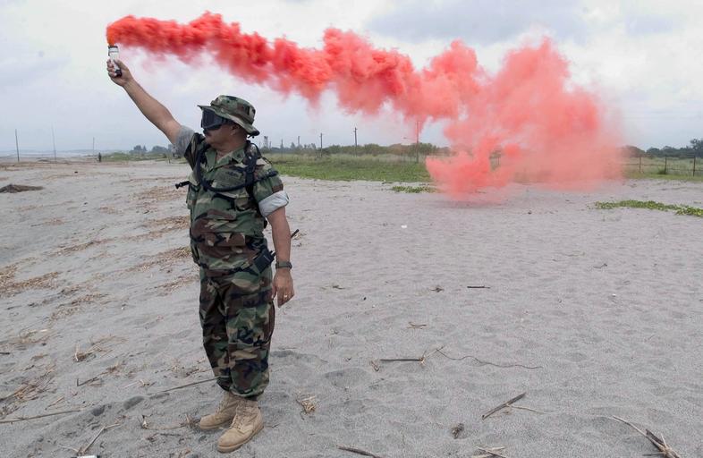 Keywords: US Navy 060818-N-9851B-001 Chief Boatswain's Mate Victor R. Gonzales of Beach Master Unit One detachment Western Pacific holds a smoke marker to direct a landing craft air cushion (LCAC).jpg en San Antonio Zambales Philippines Aug 18 2006 - Chief Boatswain's Mate Victor R Gonzales of Beach Master Unit One detachment Western Pacific holds a smoke marker to direct a landing craft air cushion LCAC to center beach during an exercise Cooperation Afloat Readiness and Training CARAT amphibious assault from dock landing ship USS Tortuga LSD 46 CARAT is an annual series of bilateral maritime training exercises between the United States and six Southeast Asia nations designed to build relationships and enhance the operational readiness of the participating forces U S Navy photo by Mass Communication Specialist 2nd Class John L Beeman RELEASED 2006-08-18 060818-N-9851B-001 Navy http //www navy mil/view_image asp id 38185 U S Navy photo by Mass Communication Specialist 2nd Class John L Beeman PD-USGov-Military-Navy Cooperation Afloat Readiness and Training 2006 Smoke buoys Beachmaster Unit One San Antonio Zambales |