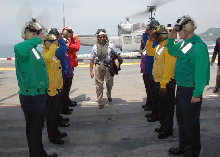 Keywords: US Navy 060831-N-2970T-160 Secretary of the Navy (SECNAV), the Honorable Donald C. Winter is greeted by sideboys upon his arrival aboard the amphibious assault ship USS Essex (LHD 2).jpg en Okinawa Japan Aug 31 2006 - Secretary of the Navy SECNAV the Honorable Donald C Winter is greeted by sideboys upon his arrival aboard the amphibious assault ship USS Essex LHD 2 Winter visited the Essex to talk to embarked commanders eat lunch and meet with the crew reenlist several Iron Gators and to hold an all hands call in the hangar bay The Secretary spoke to Sailors about the changes that will be taking place in the Navy especially in the Pacific and assured them that the Navy will continue aiming to provide a high quality of life for them and their families U S Navy photo by Mass Communication Specialist 3rd Class Marvin E Thompson RELEASED 2006-08-31 060831-N-2970T-160 Navy http //www navy mil/view_image asp id 38706 U S Navy photo by Mass Communication Specialist 3rd Class Marvin E Thompson PD-USGov-Military-Navy Aboard USS Essex LHD-2 Donald C Winter Rainbow sideboys |