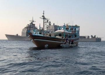 | Keywords: US Navy 061110-N-6397K-003 Responding to a distress call, Sailors assigned to a rescue and assistance team from the U.S. Navy guided-missile cruiser USS Anzio (CG 68), provide aid to the motor vessel SINAA, a 35-meter Iranian-f.jpg en Arabian Sea Nov 10 2006 Responding to a distress call Sailors assigned to a rescue and assistance team from the U S Navy guided-missile cruiser USS Anzio CG 68 provide aid to the motor vessel SINAA a 35-meter Iranian-flagged dhow Anzio supplied the dhow with water fuel and food to sustain her crew of 24 for their transit home Anzio is deployed as part of the Eisenhower Carrier Strike Group IKE CSG supporting Maritime Security Operations MSO in the 5th Fleet area of operations MSO seek to preserve the free and secure use of the world's oceans by legitimate mariners and prevent terrorist from attempting to use the maritime environment as a venue for attack or as a medium to transport personnel weapons or other material that could support their efforts U S Navy photo by Ensign Patrick King RELEASED 2006-11-10 061110-N-6397K-003 Navy http //www navy mil/view_image asp id 40684 U S Navy photo by Ensign Patrick King PD-USGov-Military-Navy Aboard USS Anzio CG-68 Sinaa ship Wooden vessels in Arabian Sea |