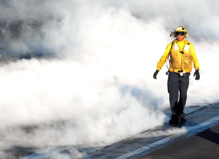 | Keywords: US Navy 061116-N-2959L-394 An aviation boatswain's mate (handling) walks back onto catapult two to prepare to launch another aircraft on the flight deck of the Nimitz-class nuclear-powered aircraft carrier USS Ronald Reagan (CV.jpg en Pacific Ocean Nov 16 2006 - An aviation boatswain's mate handling walks back onto catapult two to prepare to launch another aircraft on the flight deck of the Nimitz-class nuclear-powered aircraft carrier USS Ronald Reagan CVN 76 Reagan is currently underway conducting routine carrier operations in the southern California operating area U S Navy photo by Mass Communication Specialist 3rd Class Dominique M Lasco RELEASED 2006-11-16 061116-N-2959L-394 Navy http //www navy mil/view_image asp id 40916 U S Navy photo by Mass Communication Specialist 3rd Class Dominique M Lasco PD-USGov-Military-Navy Aviation Boatswain's Mates Handlers Flight deck of USS Ronald Reagan CVN-76 Steam catapults Catapults of USS Ronald Reagan CVN-76 |
