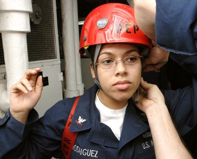 | Keywords: US Navy 061218-N-5345W-007 Hospital Corpsman 3rd Class Alexandra Rodriguez receives some assistance while getting into her protective gear as she prepares her decent into one of the ship^rsquo,s weapons magazines, during a medi.jpg en Portsmouth Va Dec 18 2006 - Hospital Corpsman 3rd Class Alexandra Rodriguez receives some assistance while getting into her protective gear Petzl Ecrin-ST helmet as she prepares her decent into one of the ship s weapons magazines during a medical emergency deep recovery drill aboard the Nimitz-class aircraft carrier USS Harry S Truman CVN 75 Truman is currently conducting a simulated five-day fast cruise while nearing the end of a Docked Planned Incremental Availability DPIA period at Norfolk Naval Shipyard NNSY in Portsmouth Va U S Navy photo by Mass Communication Specialist 3rd Class Kristopher Wilson RELEASED 2006-12-18 061218-N-5345W-007 Navy http //www navy mil/view_image asp id 41709 U S Navy photo by Mass Communication Specialist 3rd Class Kristopher Wilson PD-USGov-Military-Navy Norfolk Naval Shipyard Aboard USS Harry S Truman CVN-75 Hospital Corpsman Women in the United States Navy Women looking at viewer Females with helmets Females with glasses Women with hard hats Climbing helmets Petzl |