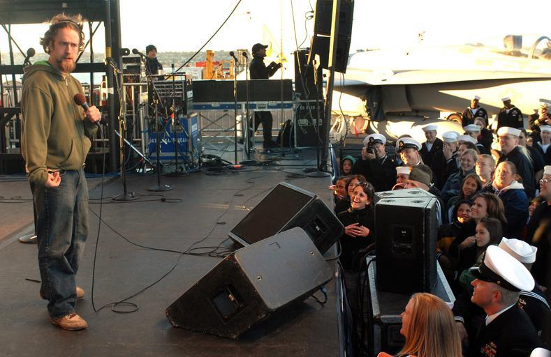Keywords: US Navy 061219-N-2959L-783 Winner of the television program Last Comic Standing Josh Blue gets the crowd laughing during a holiday concert aboard the Nimitz-class aircraft carrier USS Ronald Reagan (CVN 76).jpg en Coronado Calif Dec 19 2006 Winner of the television program Last Comic Standing Josh Blue gets the crowd laughing during a holiday concert aboard the Nimitz-class aircraft carrier USS Ronald Reagan CVN 76 The United Service Organizations USO sponsored the event that featured recent American Idol winner Taylor Hicks The event was open to all service members and their families in the San Diego area U S Navy photo by Mass Communication Specialist 2nd Class Dominique M Lasco RELEASED 2006-12-19 061219-N-2959L-783 Navy http //www navy mil/view_image asp id 41791 U S Navy photo by Mass Communication Specialist 2nd Class Dominique M Lasco PD-USGov-Military-Navy Guests at Naval Air Station North Island Guests aboard USS Ronald Reagan CVN-76 Josh Blue |