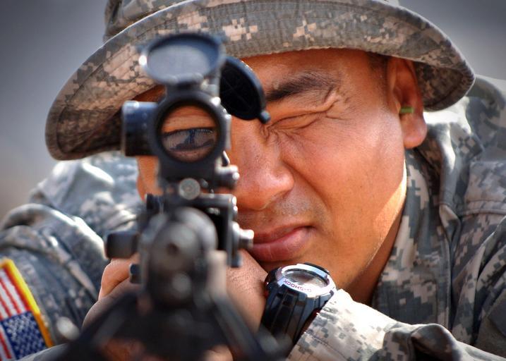 | Keywords: US Navy 061223-N-1328C-253 Army Sgt. Mijung Kim, from Harmon, Guam, uses a rifle scope to line up a target 300 meters away during joint training with the Marine Corps 5th Provisional Security Company.jpg en Arta Djibouti Dec 23 2006 - Army Sgt Mijung Kim from Harmon Guam uses a rifle scope to line up a target 300 meters away during joint training with the Marine Corps 5th Provisional Security Company Kim is currently deployed with the Guam Army National Guard's Team Charlie of the 1st Battalion of the 294th Infantry at Camp Lemonier Djibouti U S Navy photo by Chief Mass Communication Specialist Eric A Clement RELEASED 2006-12-23 061223-N-1328C-253 Navy http //www navy mil/view_image asp id 42229 U S Navy photo by Chief Mass Communication Specialist Eric A Clement PD-USGov-Military-Navy Images from US Navy location Arta Djibouti Telescopic sights Male eyes Taken with Nikon D2X |