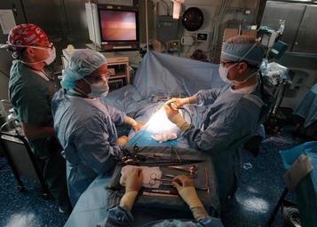 | Keywords: US Navy 070118-N-3455P-001 Fleet Surgical Team 5 performs laparoscopic surgery aboard the amphibious assault ship USS Boxer (LHD 4).jpg en Persian Gulf Jan 18 2007 - Fleet Surgical Team 5 performs laparoscopic surgery aboard the amphibious assault ship USS Boxer LHD 4 Boxer is the flagship for Boxer Expeditionary Strike Group currently operating in the Persian Gulf conducting Maritime Security Operations MSO in support of the global war on terrorism U S Navy photo by Mass Communication Specialist Seaman Paul Polach RELEASED 2007-01-18 070118-N-3455P-001 Navy http //www navy mil/view_image asp id 42405 U S Navy photo by Mass Communication Specialist Seaman Paul Polach PD-USGov-Military-Navy Aboard USS Boxer LHD-4 |