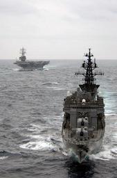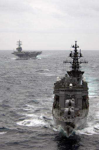 Keywords: US Navy 070318-N-5961C-226 Japan Maritime Self Defense Force (JMSDF) ship JS Haruna (DDH 141) and USS Ronald Reagan (CVN 76) steam in formation during a photo exercise (PHOTOEX) between Ronald Reagan Carrier Strike Group and JM.jpg en PHILIPPINE SEA March 18 2007 - Japan Maritime Self Defense Force JMSDF ship JS Haruna DDH 141 and USS Ronald Reagan CVN 76 steam in formation during a photo exercise PHOTOEX between Ronald Reagan Carrier Strike Group and JMSDF Ronald Reagan Carrier Strike Group with embarked Carrier Air Wing CVW 14 is deployed in support of operations in the 7th Fleet area of responsibility U S Navy photo by Chief Mass Communication Specialist Spike Call RELEASED 2007-03-18 070318-N-5961C-226 Navy http //www navy mil/view_image asp id 44164 U S Navy photo by Chief Mass Communication Specialist Spike Call PD-USGov-Military-Navy General views of USS Ronald Reagan CVN-76 010 JS Haruna DDH-141 |