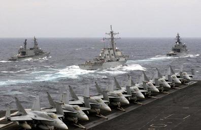 Keywords: US Navy 070318-N-7130B-435 Off the port side of USS Ronald Reagan (CVN 76), USS Paul Hamilton (DDG 60), center, JS Myoko (DDG 175), right, and JS Hamagiri (DD 155) move into position to participate in a photo exercise (PHOTOEX).jpg en PHILIPPINE SEA March 18 2007 - Off the port side of USS Ronald Reagan CVN 76 USS Paul Hamilton DDG 60 center JS Myoko DDG 175 right and JS Hamagiri DD 155 move into position to participate in a photo exercise PHOTOEX between the U S Navy and Japan Maritime Self Defense Force JMSDF Ronald Reagan Carrier Strike Group with embarked Carrier Air Wing CVW 14 is deployed in support of operations in the 7th Fleet area of responsibility U S Navy photo by Mass Communication Specialist 2nd Class Aaron Burden RELEASED 2007-03-18 070318-N-7130B-435 Navy http //www navy mil/view_image asp id 44170 U S Navy photo by Mass Communication Specialist 2nd Class Aaron Burden PD-USGov-Military-Navy USS Paul Hamilton DDG-60 Flight deck of USS Ronald Reagan CVN-76 International groups of naval ships JS Myōkō DDG-175 JS Hamagiri DD-155 |