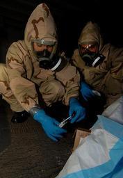 View Original:US_Navy_070321-N-7780S-015_Damage_Controlman_3rd_Class_Hunter_Young,_left,_and_Shawn_Dunaway_take_samples_from_a_mock_anthrax_pile_during_a_Chemical,_Biological,_Radiological_(CBR)_decontamination_drill.jpg (1600x2316)